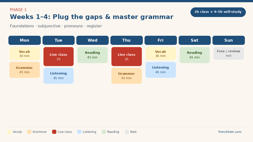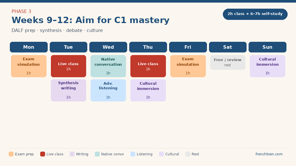 Weekly Schedule to Go From B2 to C1 in French